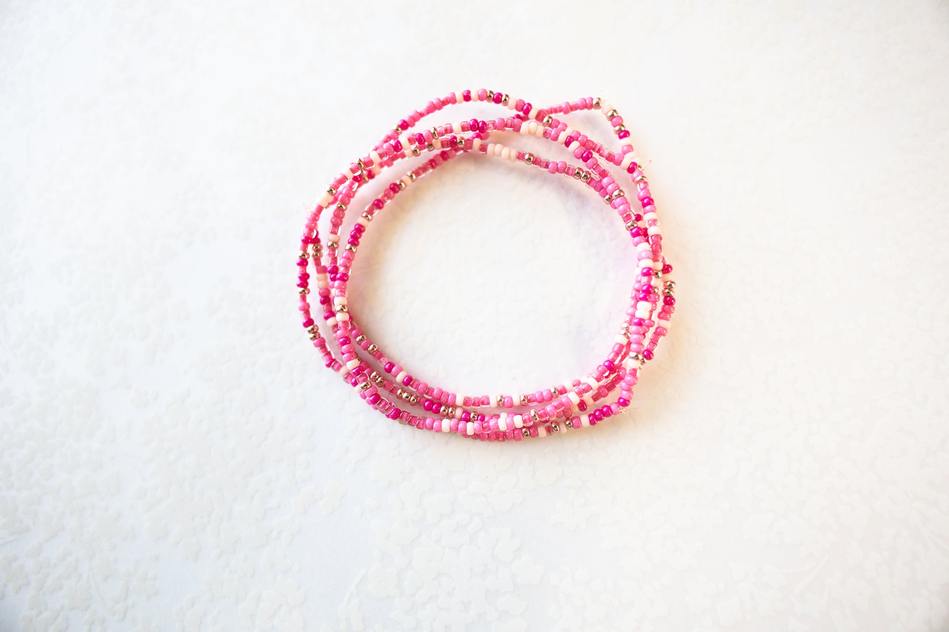 Pinky is a sweet, playful “eleven” style bracelet featuring a mix of bright pink, soft blush, and white micro beads. Accented with subtle metallic details, this bracelet adds a fun pop of color to your everyday stack while still feeling light and wearable. Made on soft elastic string for a flexible, comfortable fit.